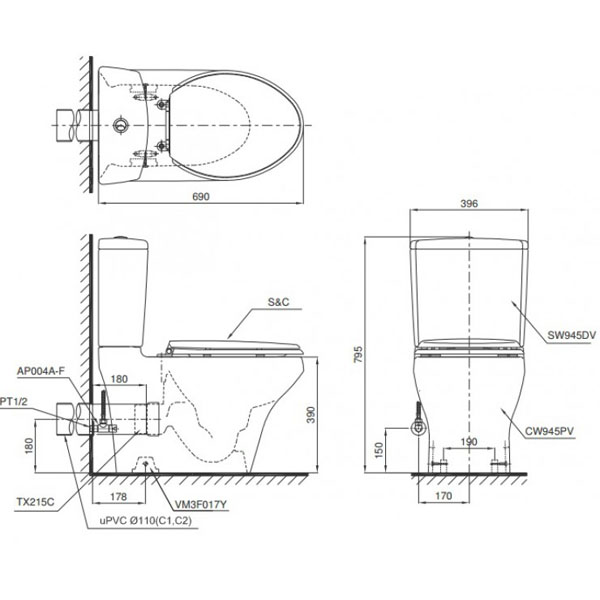 Phù hợp lắp đặt với nắp rửa điện tử WASHLET (tùy chọn)