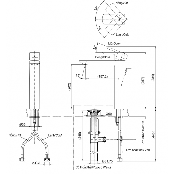 Áp lực nước: 0.05MPa ~ 0.75MPa
