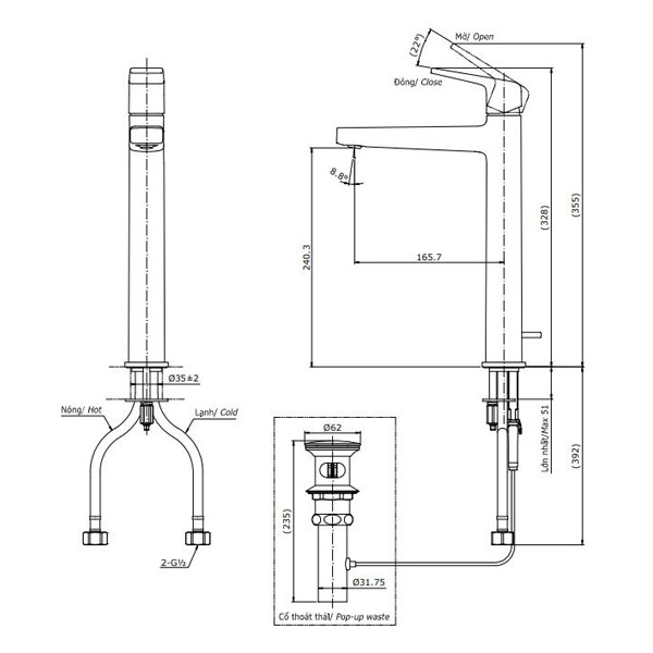 Áp lực nước: 0.05MPa ~ 0.75MPa