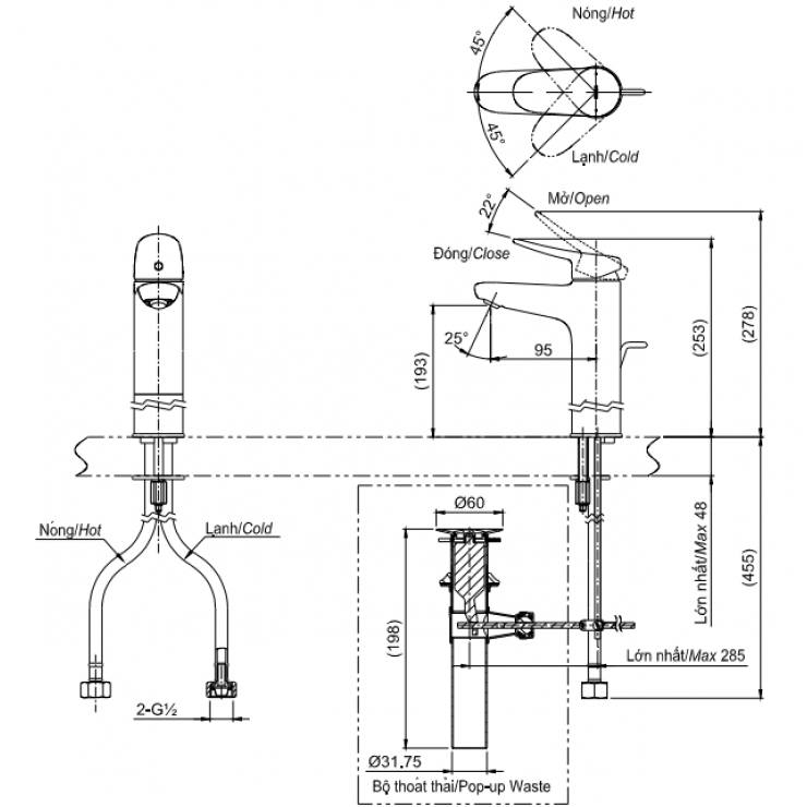 Áp lực nước: 0.05MPa ~ 0.75MPa